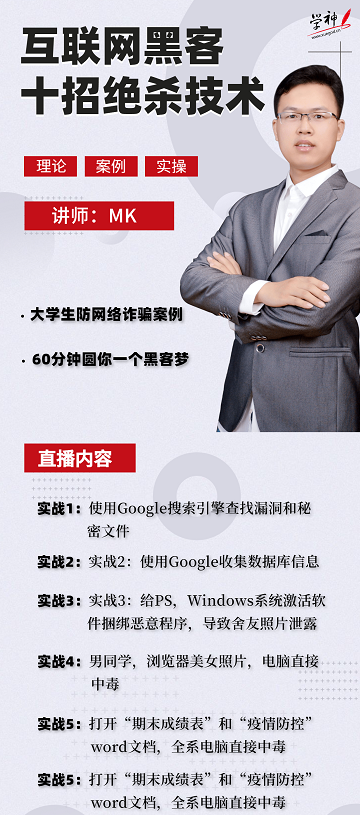 之后的两节课都是由北京学神IT教育的申建明(MK)老师进行讲解的。申老师的第一节课通过一系列黑客操作为同学们引出了“网络不安全”其实并不遥远的话题,同时也无声地在同学们心中提出了该如何做到网络安全的问题。这使得同学们在本次的讲座中也认识到了一个新的职业——渗透安全工程师,以及该职业的发展前景。申老师的第二节课又以同样的方式向大家介绍了Linux云计算工程师的工作内容以及当前社会对该职业的刚需。同学们通过申老师这两节讲座能够清晰地感触到这个社会对于高技术人才的需求量,并且能够真正意识到当下的学习内容对于以后提高自己在社会中的竞争力有着多么重要的作用。