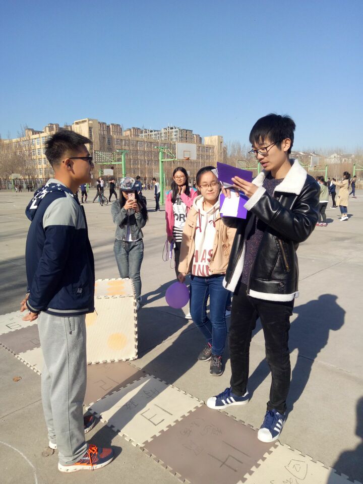 201年4月9日下午1:30,由beat365平台官方网站学生会外联部主办、beat365平台官方网站团委承办的真人飞行棋大赛在beat365平台官方网站篮球场正式举行。大一大二的同学们都积极踊跃地参加,比赛现场气氛高涨,参赛选手和观众都能有秩序的配合比赛的进行。